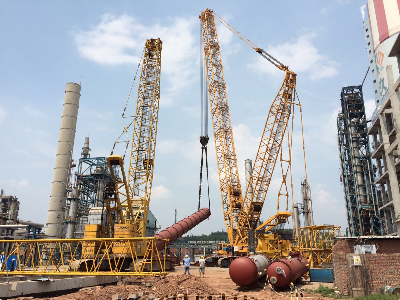 公司擁有大型吊裝設(shè)備履帶式起重機六十余臺,吊裝能力50T-1000T